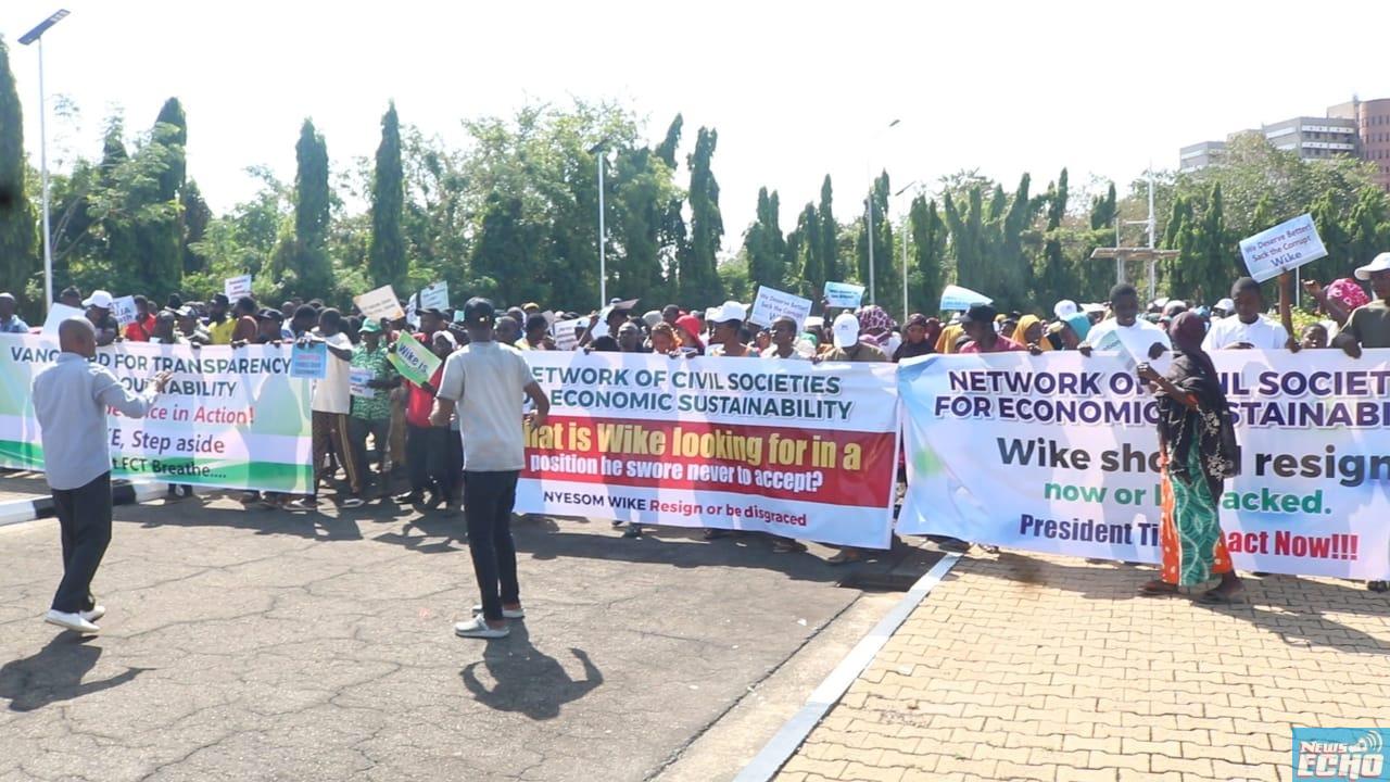 A coalition of over 10,000 indigenes of the Federal Capital Territory (FCT) and civil society groups on Wednesday converged on the National Assembly on Wednesday, demanding for the resignation of FCT minister Nyesom Wike.