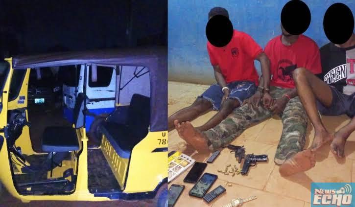 Police operatives of the Anambra State command, have arrested three suspected robbery gang and recovered one Baretta Pistol and one locally made Chief Revolver Pistol, twelve rounds of life, and one expended ammunition including a stolen Tricycle popularly known as Keke.