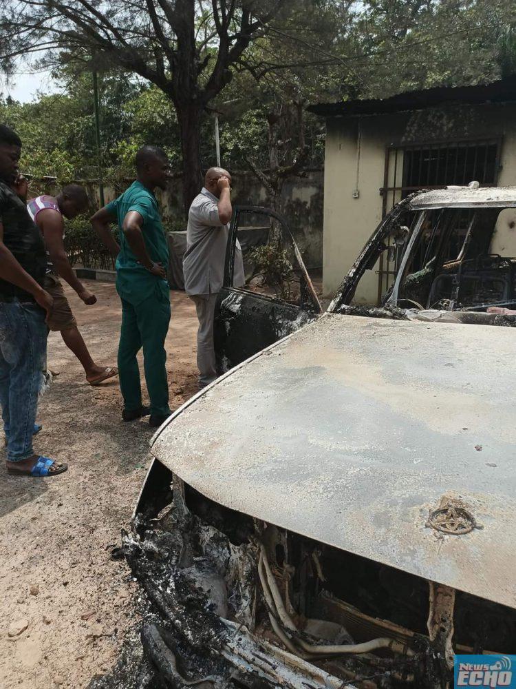 Unknown arsonists had on Tuesday, set the Alayi country home of Ukeje who represented Bende federal constituency from 2007 to 2019, ablaze, burning the interior part of the house and also burning two posh cars parked inside the compound.